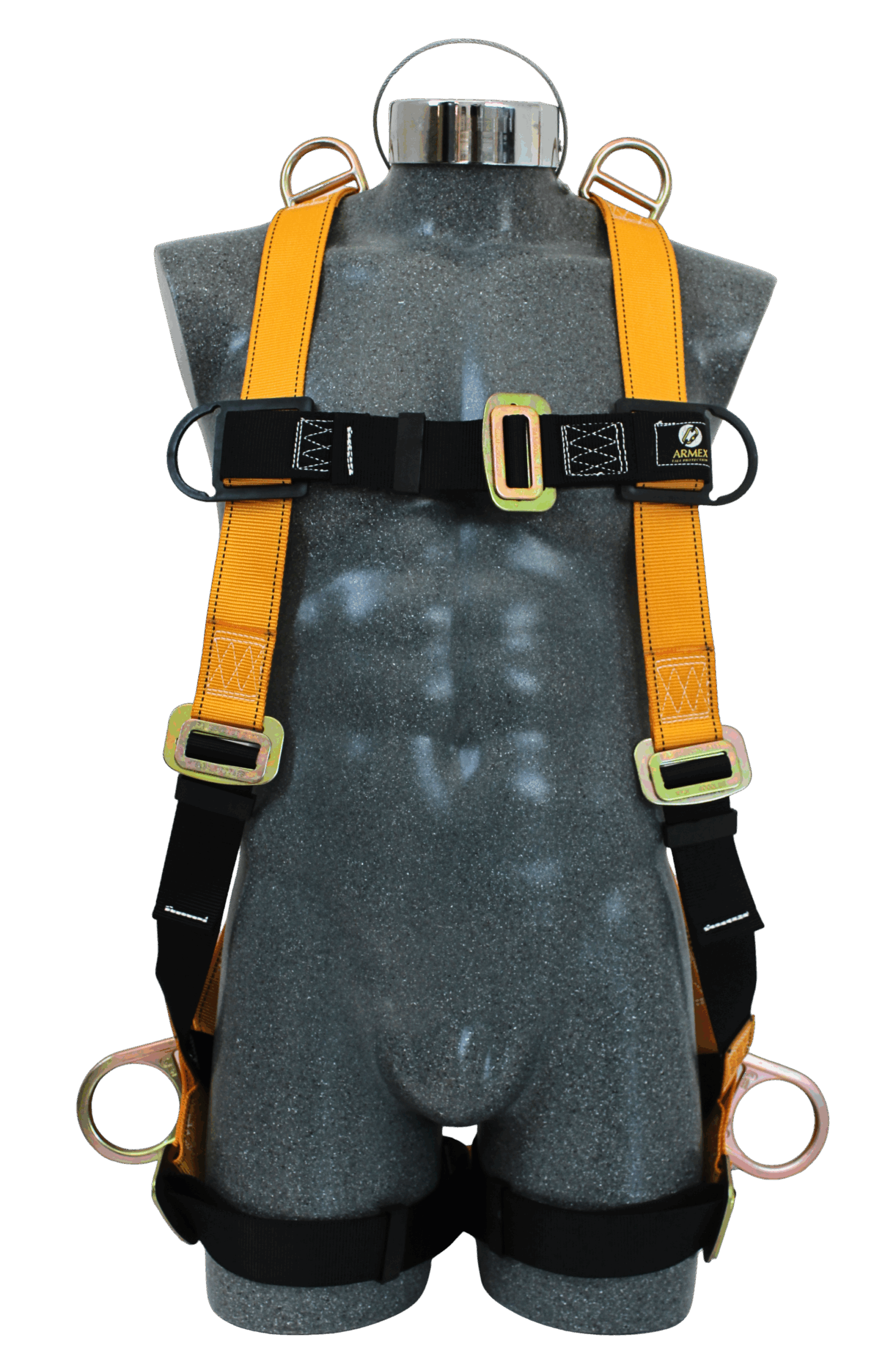 Argollas de acero (5 pzs) en espalda, costados y hombros.